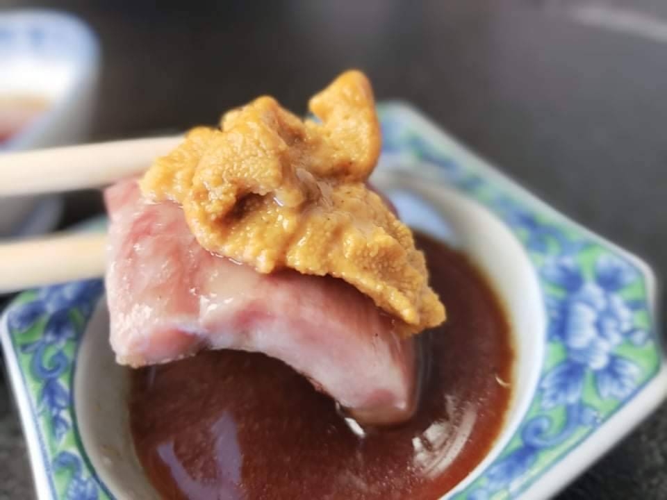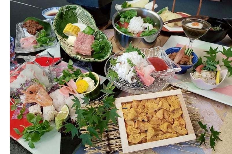 由良で素潜りで採った希少な「赤うに(逆さうに)」を使った夏限定メニュー
