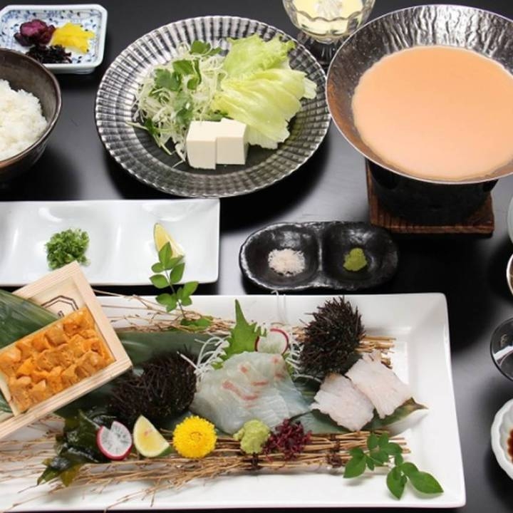 淡路島で育ったミョウバンを使用していない、うに本来の甘みを味わえる「淡路島生うに」を使用したうにのしゃぶしゃぶのコースです。