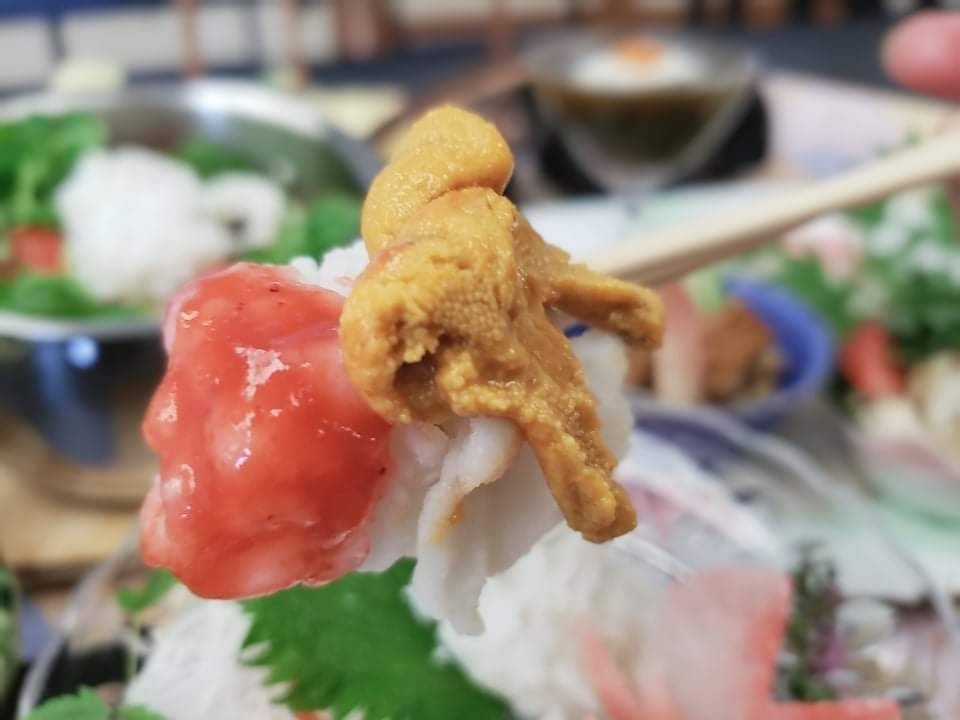 由良で素潜りで採った希少な「赤うに(逆さうに)」を使った夏限定メニュー